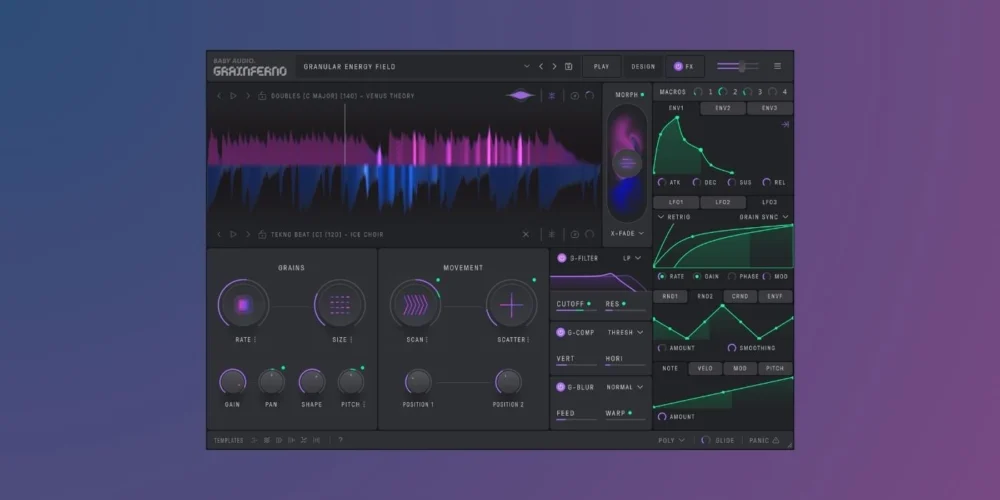 Furthermore, Grainferno includes six factory templates, each designed to quickly configure the plugin for specific granular synthesis applications: