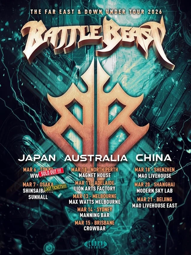 BATTLE BEAST’s seventh studio album, "Steelbound," released in October 2025 via Nuclear Blast, represents a significant milestone in their discography. The album, which has been met with critical acclaim, solidified the band’s position as a leading force in the power metal scene. Prior to the recent Tokyo debut, BATTLE BEAST concluded an extensive European tour in mid-December 2025. This tour commenced with a significant performance at Hamburg’s Inselpark Arena, their largest German headline show to date. The European leg featured support from DOMINUM and Sweden’s MAJESTICA, showcasing the band’s continued commitment to engaging with their international audience.